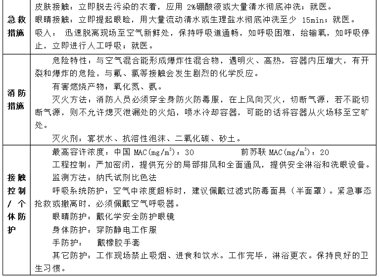 氨的具體性質(zhì)如下表: